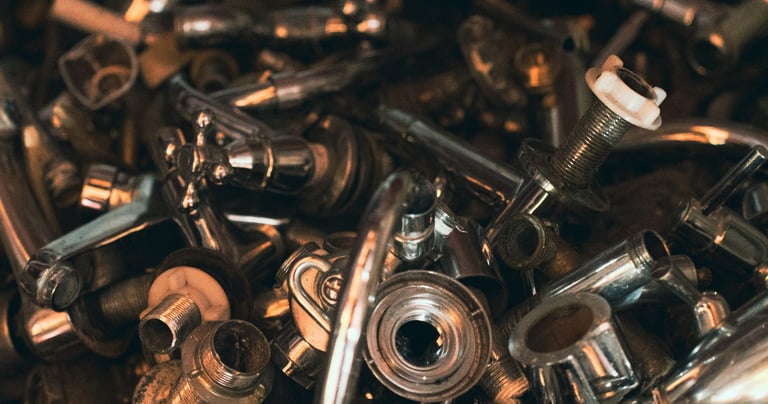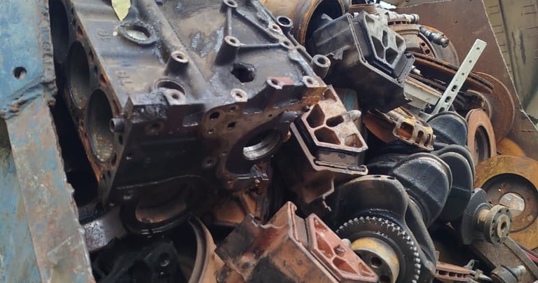 A sucata de ferro fundido é composta por peças e partes de ferro que já foram usadas e estão danificadas. Essas peças são recolhidas e recicladas para serem transformadas em novos produtos.